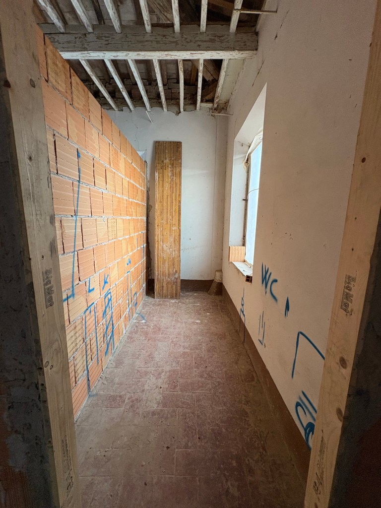 Qui siamo nella parte forte ed essenziale dell’appartamento: La cucina (foto a sinistra) e il bagno (foto a destra). Questo è come si presentano oggi 26 marzo 2026.